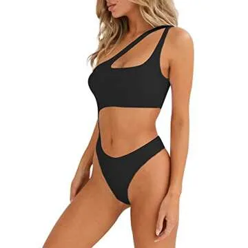 SherryDC Women's Sexy Cutout One Shoulder High Cut Cheeky One Piece Swimsuit Bathing Suit Black