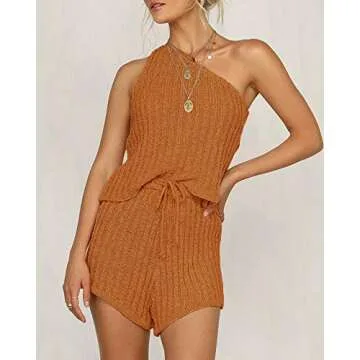 Sherrylily Womens Romper Outfits Sleeveless Vests Tops Tie Front Pants Overalls Jumpsuits