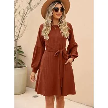 SHERRYRISE Women's Long Sleeve Crew Neck Ribbed Knit High Waist Sweater Dress with Pockets, Caramel, S