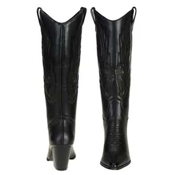 Show moreStep out in style with the SheSole Women's Tall Cowgirl Cowboy Boots. These stunning knee-high boots combine classic western flair with modern comfort, making them the perfect accessory for any wardrobe. Crafted from durable yet soft PU leather, they feature exquisite embroidery and dual pull-on tabs for easy wearing. The pointy toe design enhances your silhouette, while the chunky heel, standing at approximately 2.95 inches, provides stability and support. With a knee-high shaft height of 13.96 inches and a wide calf circumference of 15.74 inches (based on size 8), these boots ensure both a stylish look and a comfortable fit.