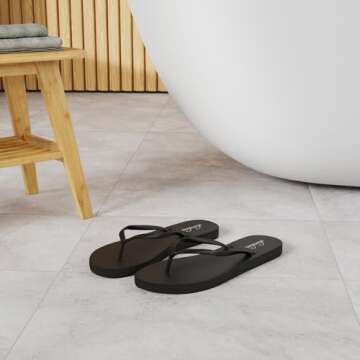 shevalues Slim Flip Flops for Women Beach Rubber Shower Shoes Basic Thong Sandals, Black, 39, (Size 8-8.5)