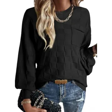Introducing the ultimate addition to your fall wardrobe, this trendy soft knit fabric sweater delivers a perfect blend of women's fashion and casual comfort. Whether you're heading out for a casual brunch or lounging around the house, this sweater stands out with its long batwing sleeves and classic crewneck. The checkered pattern and patchwork pocket add a touch of flair, while the ribbed knit design elevates the overall aesthetic. Designed with a drop shoulder cut, it creates a loose and casual effect that...