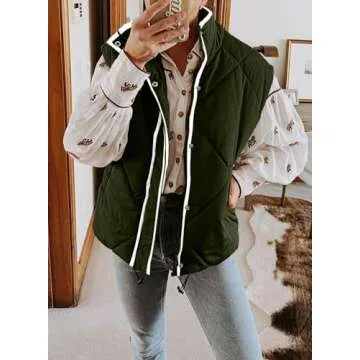 SHEWIN Puffer Vest Causal Stand Collar Sleeveless Fall Jackets Womens Vests Outerwear Trendy Winter Clothes For Women, US 12-14(L),Moss Green