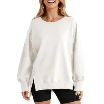 SHEWIN Womens Spring Fashion 2025 Casual Crewneck Lightweight Pullover Sweatshirts Loose Long Sleeve Tops Oversized Sweatshirt for Women A White X-Large