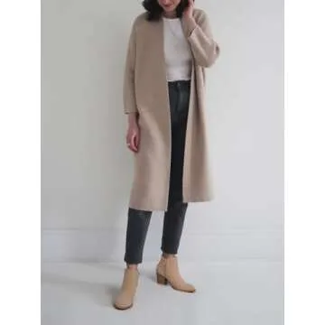 SHIBEVER Women's Ankle Boots Heel: Chunky Low Heeled Almond Toe Short Booties with Zipper Faux Suede Dress Western Fall 2024 Shoes Apricot Size 8