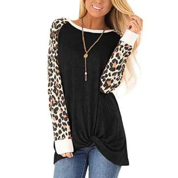 Show moreElevate your wardrobe with the SHIBEVER Women's Leopard Print Tops, designed for those who value both style and comfort. This long sleeve, twist knotted side blouse combines a chic black leopard print with a soft, breathable fabric that makes it perfect for any casual occasion. Its round neck design adds an element of sophistication while the relaxed fit ensures you stay comfortable throughout the day. Whether you're running errands or out for brunch, this top will become your go-to choice for effortless style.