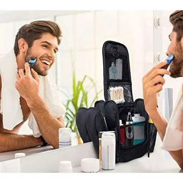 SHIK Bags Premium Hanging Toiletry Travel Bag – Large Waterproof Bathroom Bag Holds Toiletries, Makeup, Bottles, Travel Accessories – Portable Organizer for Men & Women + Free Luggage Tag, Black