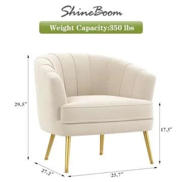 SHINEBOOM Velvet Accent Chairs for Living Room Bedroom Office Leisure Upholstered Single Sofa Chair Arm Chair Comfy Chair Reading Club Coffee Chair with Metal Legs, Beige