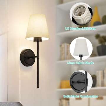 Show moreIntroducing the ShineTech Wall Sconces Set of 2, where classic design meets modern functionality. Crafted with durable premium materials, these sconces boast an elegant long column arm complemented by a chic linen fabric shade. Designed to provide a soft, warm glow, these wall lights not only enhance your lighting experience but also protect your eyes, creating a cozy and relaxing atmosphere in any room.
