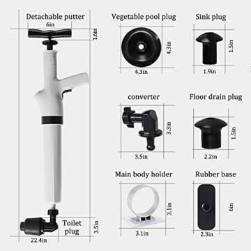 Shineyard 9 in 1 Air Plunger for Toilet,Toilet Plunger, Drain Plumb Plunger,Power Plunger,High Pressure with 9 Detachable Assembly Heads for Plugging Toilets,Kitchens,Bathrooms(white)