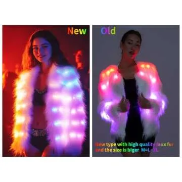 SHINYOU Women Faux Fur Jacket LED Light Up Jacket Halloween Chirstmas Music Festival Gift Winter night out coat Plus Size(White Plus Size, L)