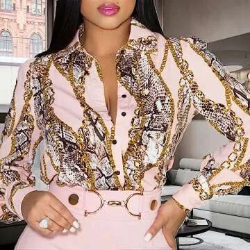Shirts for Women Button Down Dressy Casual Long Sleeve Blouse Colorful Tops(Buchona,S)