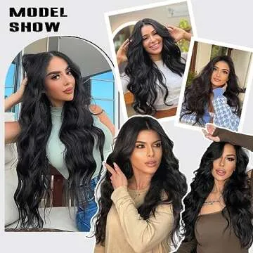 SHNMIN 20 inches Clip in Hair Extensions Long Wavy Black Hair Extensions 4PCS Thick Hairpieces Synthetic Fiber Double Weft Hair Extensions for Women