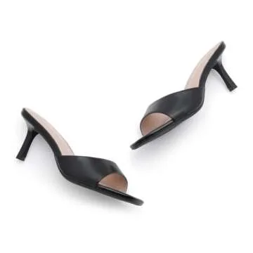 Shoe Land Deverena Women's Low Heels Stiletto Heeled Slides, Open Toe One Band Slip-On Heeled Mules – Dressy Heeled Sandals for Prom, Party, Wedding, and Vacation, Black, Size 11.0, Deverena