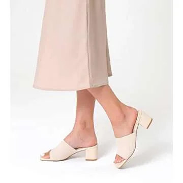 Shoe'N Tale Heeled Sandals For Women Square Open Toe Heeled Mules Chunky Block Low Heel Slip On Slides(7,Beige)