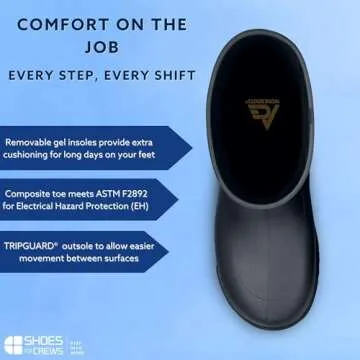 Shoes for Crews Bullfrog Composite Toe, Men's, Women's, Unisex, Non-Slip Work Boots, Water Resistant, Black, Men's 9 / Women's 11