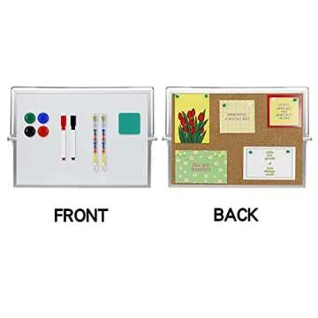 Show more Introducing the SHOOFFICE Combo Dry Erase Board & Cork Board, a versatile and functional message board that effortlessly combines style and utility. Perfectly sized at 16" x 12", this innovative dual-purpose board caters to all your organizational needs while enhancing your workspace aesthetics. One side features a sleek magnetic dry erase board, ideal for jotting down notes, brainstorming ideas, or displaying important announcements, while the other side offers a high-quality cork board designed for pinning reminders, photos, and cards with ease. With an aluminum frame that enhances durability, the SHOOFFICE board promises to be your go-to solution in both office and home environments.