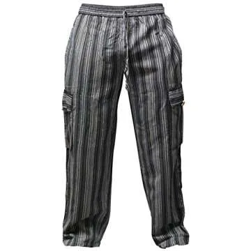 Show moreEmbrace the carefree spirit of summer with the Shopoholic Fashion Men's Light Weight Stripe Hippy Combat Trouser. These stunning multicolor striped cargo pants are not only a fashion statement but also a comfortable wardrobe essential. Made from 100% lightweight handloomed cotton, they provide breathability and flexibility for an unmatched experience, whether you're exploring a music festival or lounging on holiday. Each pair is carefully handmade in Nepal, reflecting the artisanal craftsmanship that stands out in every stitch.