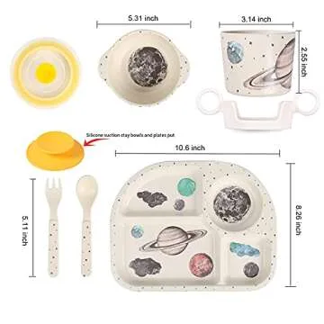 shopwithgreen 7Pcs/Set Bamboo Kids Dinnerware Set - Children Dishes - Food Plate Bowl Cup Spoon Fork Set Dishware, Cartoon Tableware, Dishwasher Safe Kids Healthy Mealtime, BPA Free
