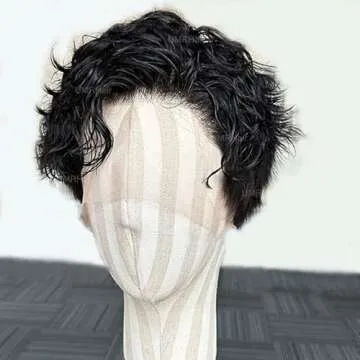 Short Pixie Cut Curly 13X6 Deep Part Lace Front Wig for Men Human Hair Natural Black Loose Curly Men Wigs Human Hair Preplucked Glueless Wig 8inch 130Density