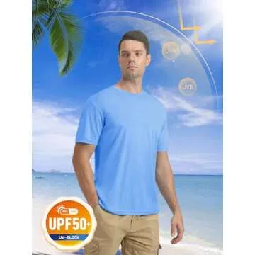 Short Sleeve T Shirt Men UPF 50+ Sun Protection T-Shirt Crew Neck Quick Dry Hiking Shirts Fishing Shirts Rash Guards Sky Blue