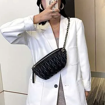 Shoulder Waist Bag for Women Crossbody Fanny Packs Fashion Quilted Chest Bag for Ladies(Waist Crossbody Bag for Black)