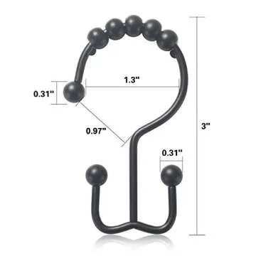 Shower Curtain Hooks Rust Resistant Shower Curtain Rings Metal Glide Rollers Shower Hooks for Bathroom Shower Curtain Rods Curtains, Set of 12 (Matte Black)