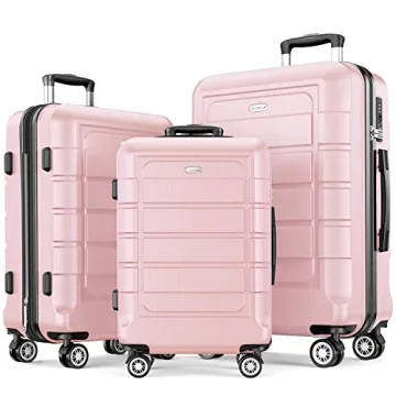 SHOWKOO Luggage Set - Expandable, Durable Hardshell Suitcases with TSA Lock - 3pcs Pink