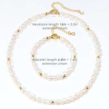 shownii Natural Pearl Necklace for Women,14K Real Gold Plated Freshwater Pearl Choker Necklace and Bracelets Set Adjustable Chain Necklace Jewelry Gift for Women Girls