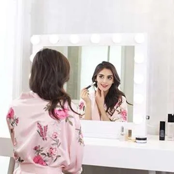 SHOWTIMEZ Hollywood Mirror with Lights, Lighted Vanity Mirror with 14 Dimmable LED Bulbs, 2 USB Ports and US Plugs, Tabletop or Wall-Mounted Makeup Mirror, White, W31.5xH25.5 inch