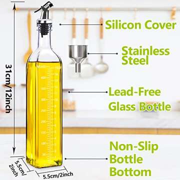 Show more Introducing the Showvigor Olive Oil Dispenser Bottle Set, a perfect blend of style, functionality, and health. Crafted from lead-free glass, each bottle in this set of two holds a generous volume of 500 ml (17 oz), making them ideal for all your kitchen needs. With their transparent design, you can easily monitor the contents and spot any impurities, ensuring that your culinary creations are both healthy and delicious. These eco-friendly bottles are not just dishwasher safe but also built to last, promising reliability for years of use.