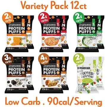 Shrewd Food Protein Puffs - High Protein, Low-Carb, Gluten-Free, Health Conscious Snacks, Keto Snacks, Non GMO, Soy-Free, Tree Nut Free, Peanut-Free, Never Fried - Variety, 0.74 Oz (Pack of 12)
