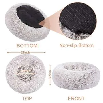 SHU UFANRO Calming Dog Beds for Small Medium Large Dogs, Small Dog Bed and Cat Bed, Washable Round Donut Pet Bed, Anti-Slip Faux Fur Fluffy Anti Anxiety Dog Bed