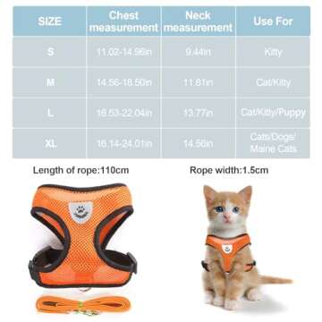 Introducing the Shudyear Cat Harness and Leash for Outdoor Safety, the ultimate companion for adventuring with your feline friend! This thoughtfully designed harness is crafted from soft, breathable mesh material, ensuring maximum ventilation on warm days. At an impressively light weight of only 100g, it allows for excellent freedom of movement, making it ideal for both curious kittens and spirited adult cats. Dressed in a vibrant orange shade with high-visibility...