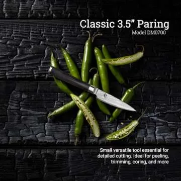 Shun Classic 3.5" Paring Knife, Handcrafted Japanese Vegetable & Fruit Knife, VG-MAX Core with Damascus Stainless Steel Cladding, Pakkawood Handle, Small Kitchen Tool for Peeling, Coring & Cutting