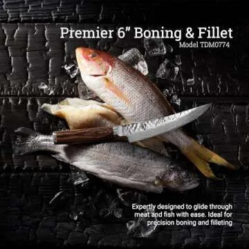 When compared to other boning and filleting knives in the market, the Shun Premier Gokujo Knife stands out due to its meticulous craftsmanship and superior materials. While many knives use standard stainless steel, this knife's VG-MAX core and Damascus cladding offer unmatched sharpness and durability. Furthermore, the beautiful hammered finish not only adds aesthetic appeal but functions uniquely by minimizing drag. Many competitor brands simply cannot rival the combination of elegance and cutting-edge performance this knife delivers.