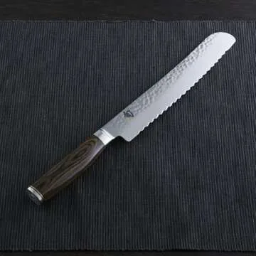 Shun Premier 9" Bread Knife, Handcrafted Japanese Serrated Knife, VG-MAX Core with Damascus Stainless Steel Cladding, Pakkawood Handle, Slicing Tool for Professional and Home Chefs
