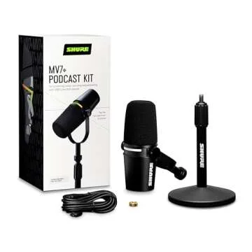 Shure MV7+ Podcast Dynamic Microphone with Stand. OBS Certified, Enhanced Audio, LED Touch Panel, USB-C & XLR Outputs, Auto Level Mode, Digital Pop Filter, Podcasting, Streaming, Recording - Black