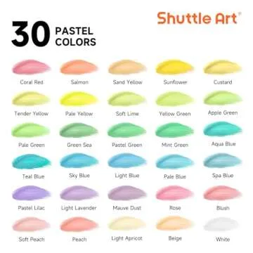 Shuttle Art 40 Pack Pastel Acrylic Paint Set, 30 Colors, 60ml/2oz Bottles, High Viscosity, Water-proof Paint With 10 Paint Brushes for Painting &Crafting on Canvas, Rock, Ceramic, Fabric