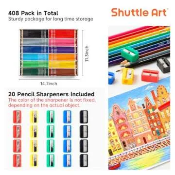 Shuttle Art Colored Pencils Bulk, 408 Pack Coloring Pencil Set Plus 20 Sharpeners, 12 Assorted Colors, Classroom Pack School Supplies