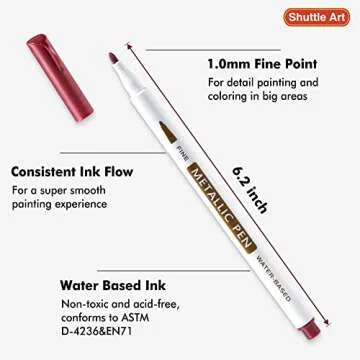 Shuttle Art Metallic Marker Pens, 30 Colors Metallic Paint Markers with 1 Coloring Book Fine Point for DIY Card, Calligraphy, Art and Crafting Projects, Works Great on Black Paper, Scrapbooks, Rock