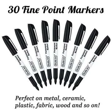 Show more Unleash your creativity with the Shuttle Art Permanent Marker Set, featuring an impressive collection of 30 black ink markers. Designed for artists, educators, and anyone who loves to create, these markers are perfect for detailed marking, drawing, writing, and coloring. The versatility of these markers allows you to express yourself on paper, plastic, metal, and most other surfaces, making them an essential addition to your creative toolkit.