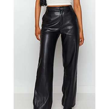Shuyun Women Faux Leather Pants Solid Color High Waist Straight Wide Leg Leggings Slim Fit Trousers Vintage Streetwear (C-Black, S)