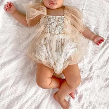Shvaility Newborn Baby Girl Romper Floral Print Mesh Puff Sleeves Jumpsuit Bodysuit Boho Summer Clothes Pink Apricot 6-12 Months