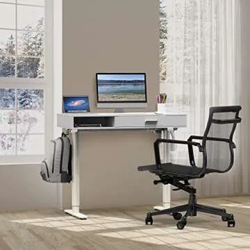Show moreIntroducing the SHW Claire 40-Inch Height Adjustable Electric Standing Desk with Drawer, an innovative solution designed to elevate your workspace and enhance productivity. This desk features a robust electric lift system that smoothly transitions from a standing height of 45 inches to a sitting height of 32 inches, allowing you to customize your working position with ease. Perfectly sized at 40" L x 20" W, its sleek and modern white finish complements any home office or workspace aesthetic. The desk also includes sliding drawers, providing ample storage space for your essentials and ensuring a tidy environment that promotes focus and creativity.