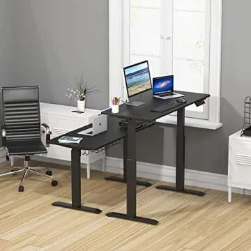 Further highlighting its functionality, the SHW Adjustable Desk includes built-in cable management solutions that aid in reducing workspace clutter, allowing you to focus entirely on your tasks without the distractions of tangled wires. Constructed from heavy-gauge steel, this desk assures durability and stability, supporting your equipment with confidence even at full extension. Users have praised its solid feel and smooth adjustment, making it a reliable option for daily use.