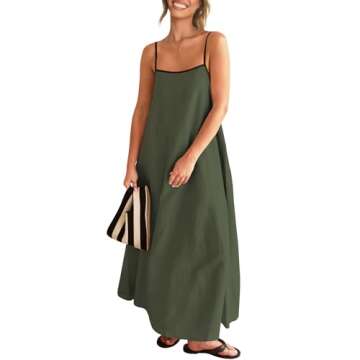 Shy Velvet Women's 2025 Summer Linen Maxi Dress - Dark Green Spaghetti Strap Backless Casual Dress