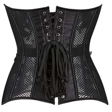SHYMMUO Black Lace Mesh Corset for Women, Floral Lace Up Corset Top, Sexy Bustier for Halloween Costumes, Gothic Waist Cincher, Vintage Steampunk Corset XS