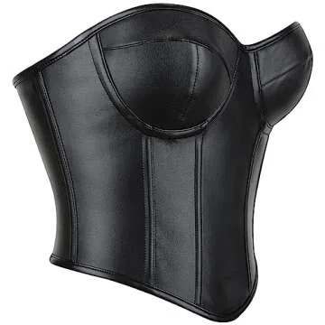 SHYMMUO Women Black Leather Corset Tops Sexy Strapless Crop Top Boned Bustier Bra L