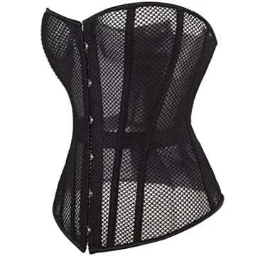 SHYMMUO Women's Black Corset Top Mesh Boned Body Shaper Sexy Lace Up Overbust Waist Trainer L